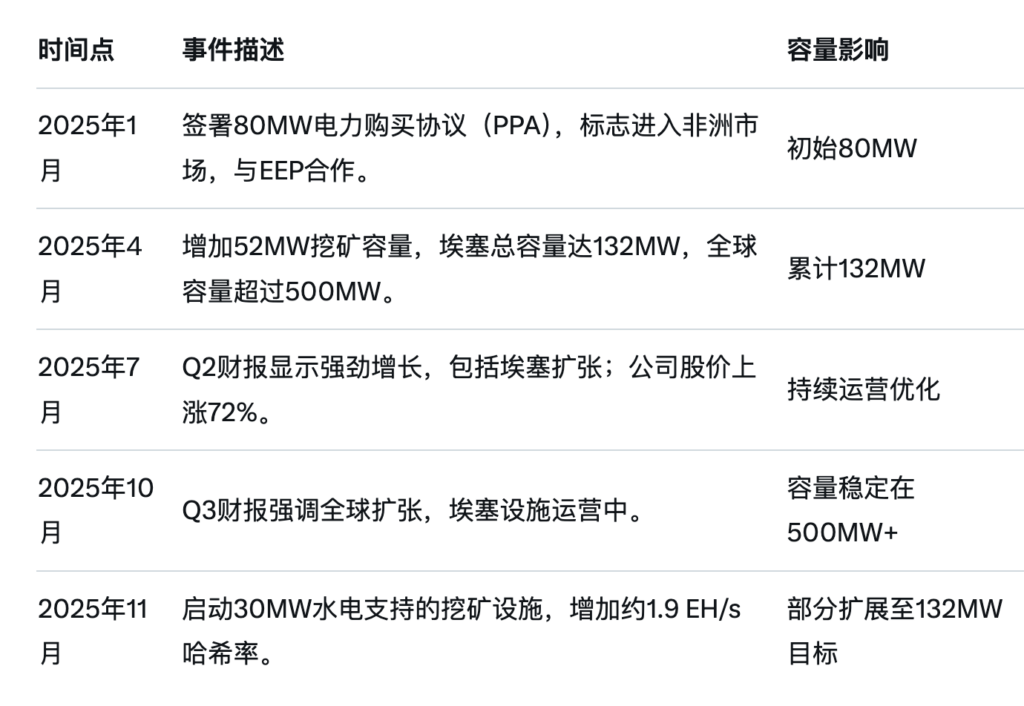 该公司在埃塞俄比亚的比特币挖矿布局主要利用当地丰富的水电资源(廉价可再生能源),旨在扩展全球挖矿容量。以下是关键布局细节,基于2025年最新进展。