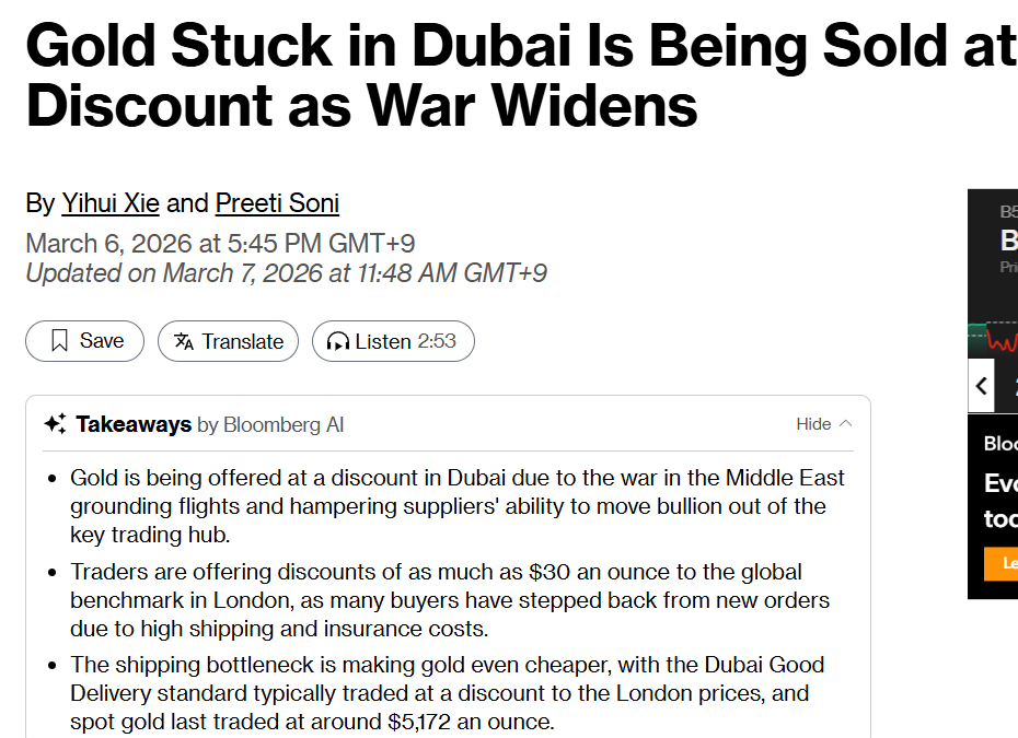 • 由于地缘冲突导致航运受限: 目前部分滞留在迪拜的黄金因运费和保险费高昂,甚至出现了相对于伦敦基准价格 30 美元/盎司 的大幅折价。
